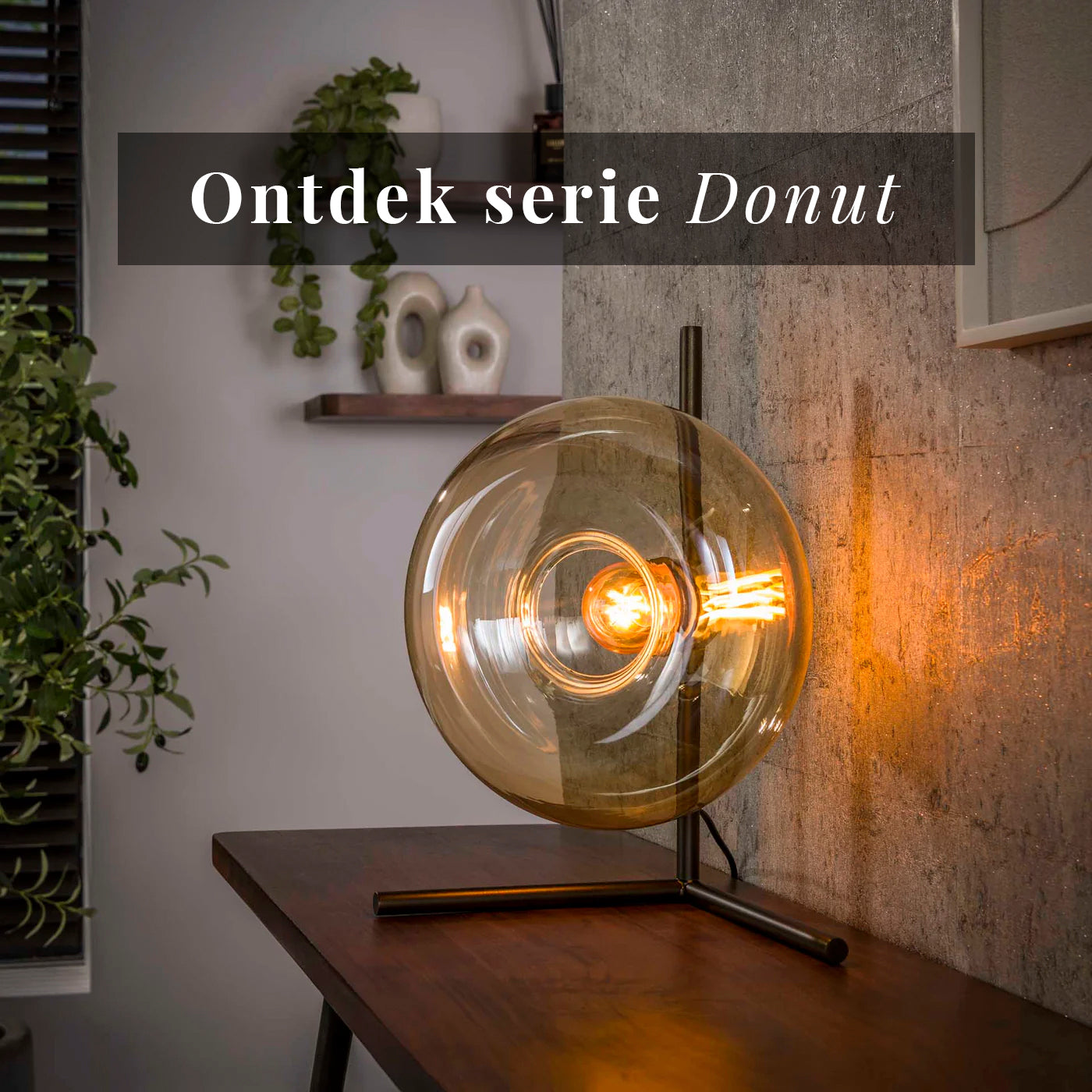 Tafellamp Donut - 1-lichts - Amberkleurig - Glas