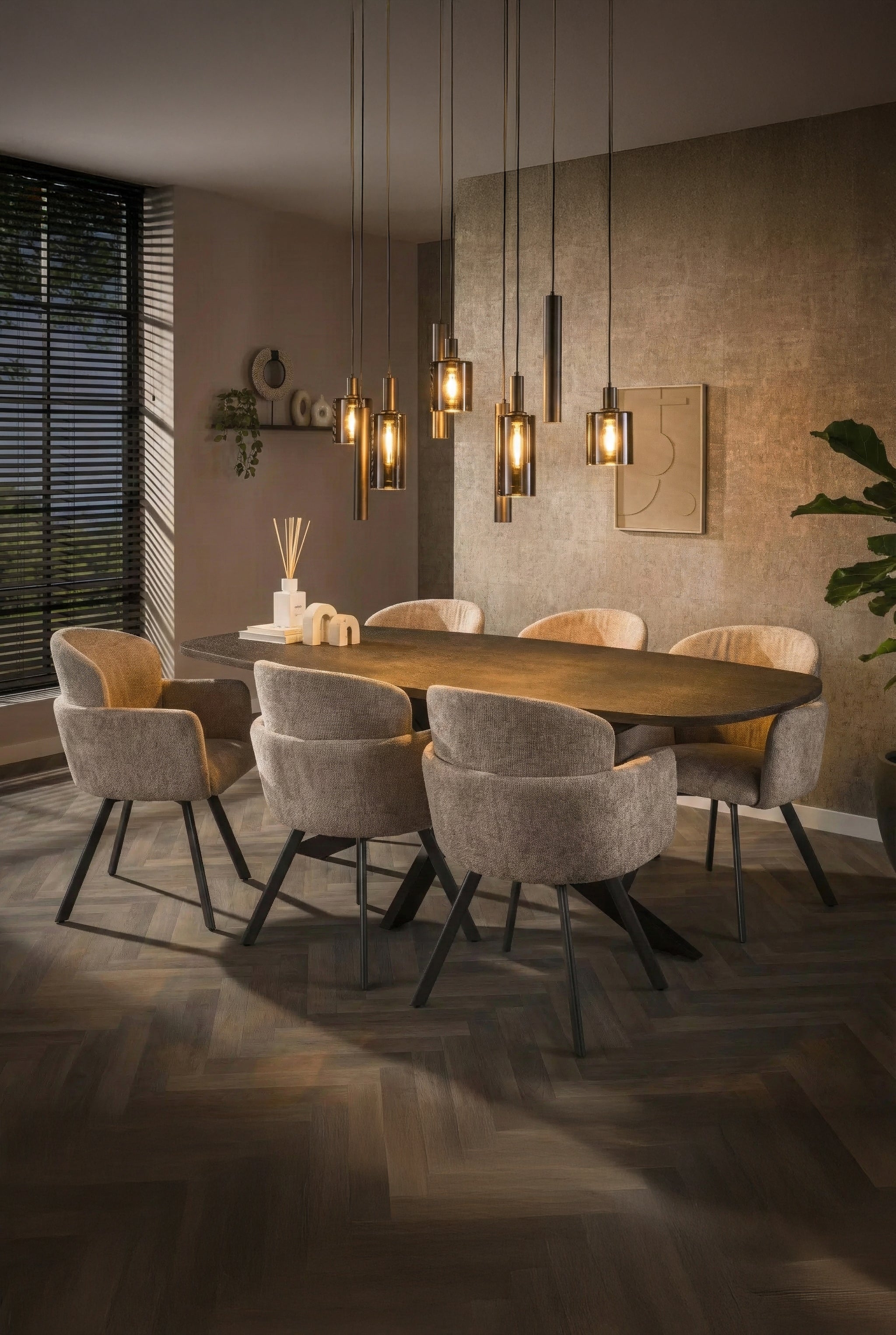 Hanglamp Elinor - 7-lichts - Amber Mix - Glas - Metaal