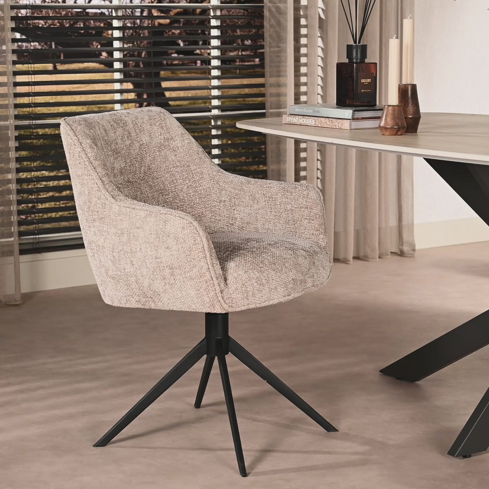 Eetkamerstoel Pure - Beige - Renegade Stof - Draaibaar